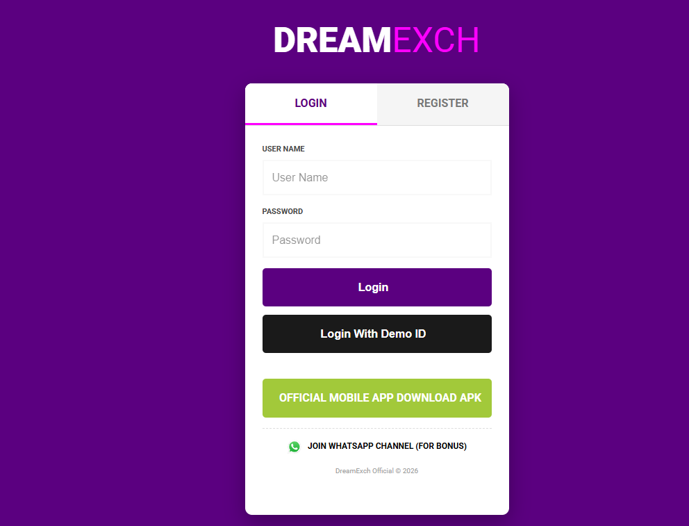 Dreamexch Login Page: Centralized page that consolidates all login options for convenience.